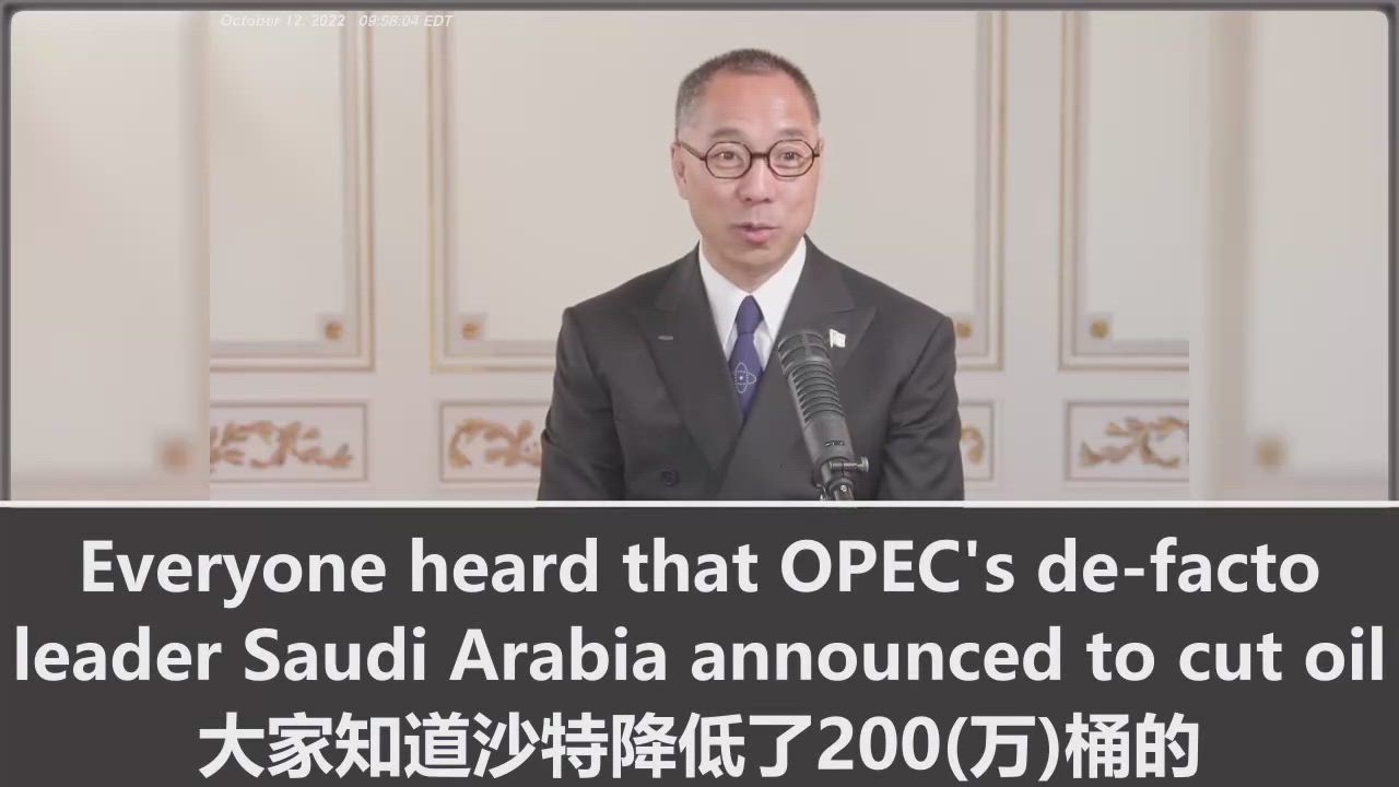 Summary:In the October 12 episode of Miles'Grand Live Broadcast, 2022, Miles Guo explains the impact of the 2 million barrels of oil cut by the Organization of the Petroleum Exporting Countries (OPEC) on global financial and energy markets.