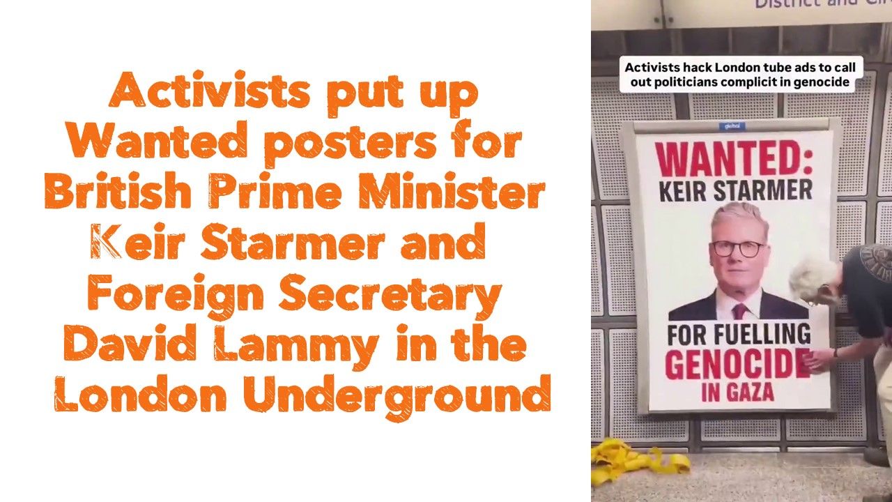 Activists put up Wanted posters for British Prime Minister Keir Starmer and Foreign Secretary David Lammy in the London Underground for their unwavering support of the ongoing Israeli genocide in Gaza.