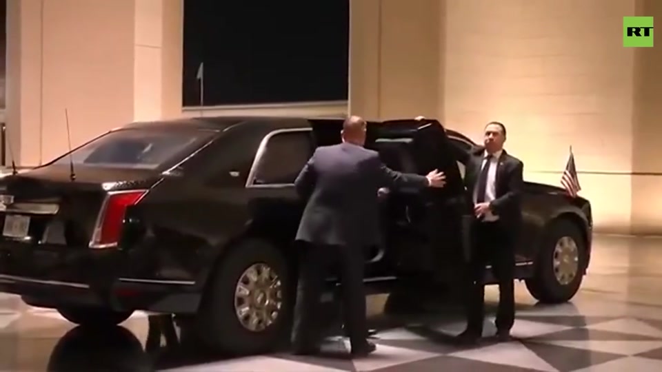 Trump pulls up to the Lusail PALACE, greeted by Emir of Qatar for the State Dinner.