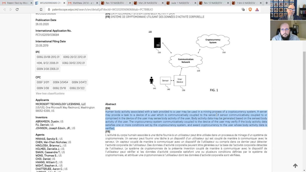 This has been a very popular video. We note that this patent's abstract has a simple acronym in the very awkward description of, "Body activity data" - B.A.D.! Many recognize a 666 suggested in the patent number, evoking the beast and mark of the beast from Revelation 13. That's certainly B.A.D.!
