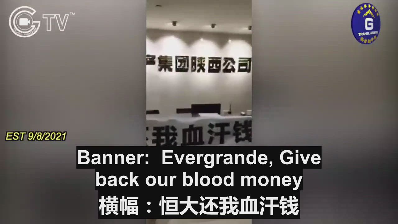 Sep 8, 2021, Evergrande Real Estate Shanxi branch, Banner: Evergrande, Give back our blood money.