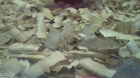 Hamster tries to hide under the wood chips, but was seen in the end [Nature & Animals]