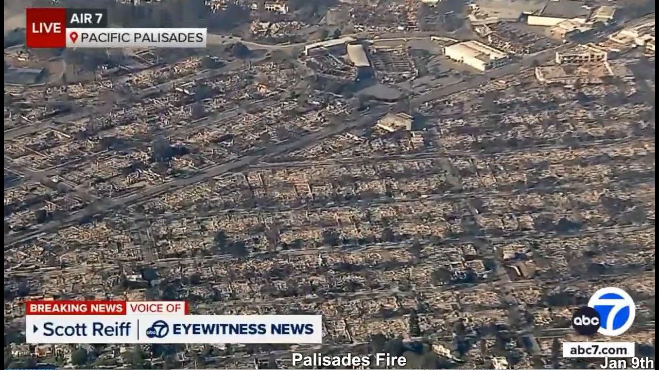 Aerial video from AIR7 shows widespread destruction in Pacific Palisades after inferno