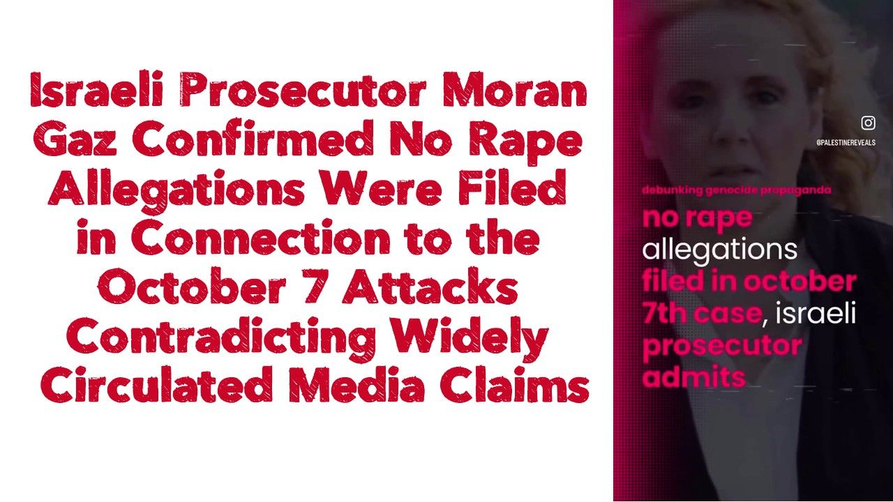 Israeli Prosecutor Moran Gaz Confirmed No Rape Allegations Were Filed in Connection to the October 7 Attacks Contradicting Widely Circulated Media Claims
