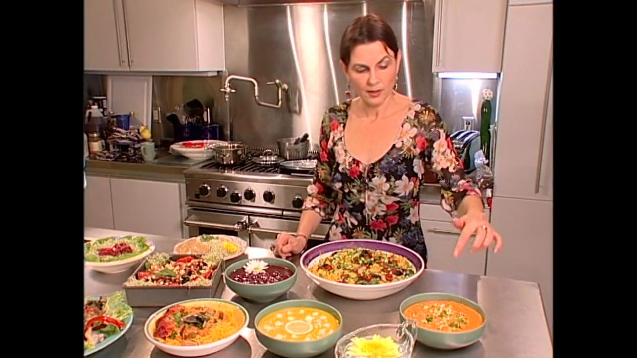 Gary Null presents Roberta. Roberta prepares 3 soup recipes (squash mango, cherry, and carrot)