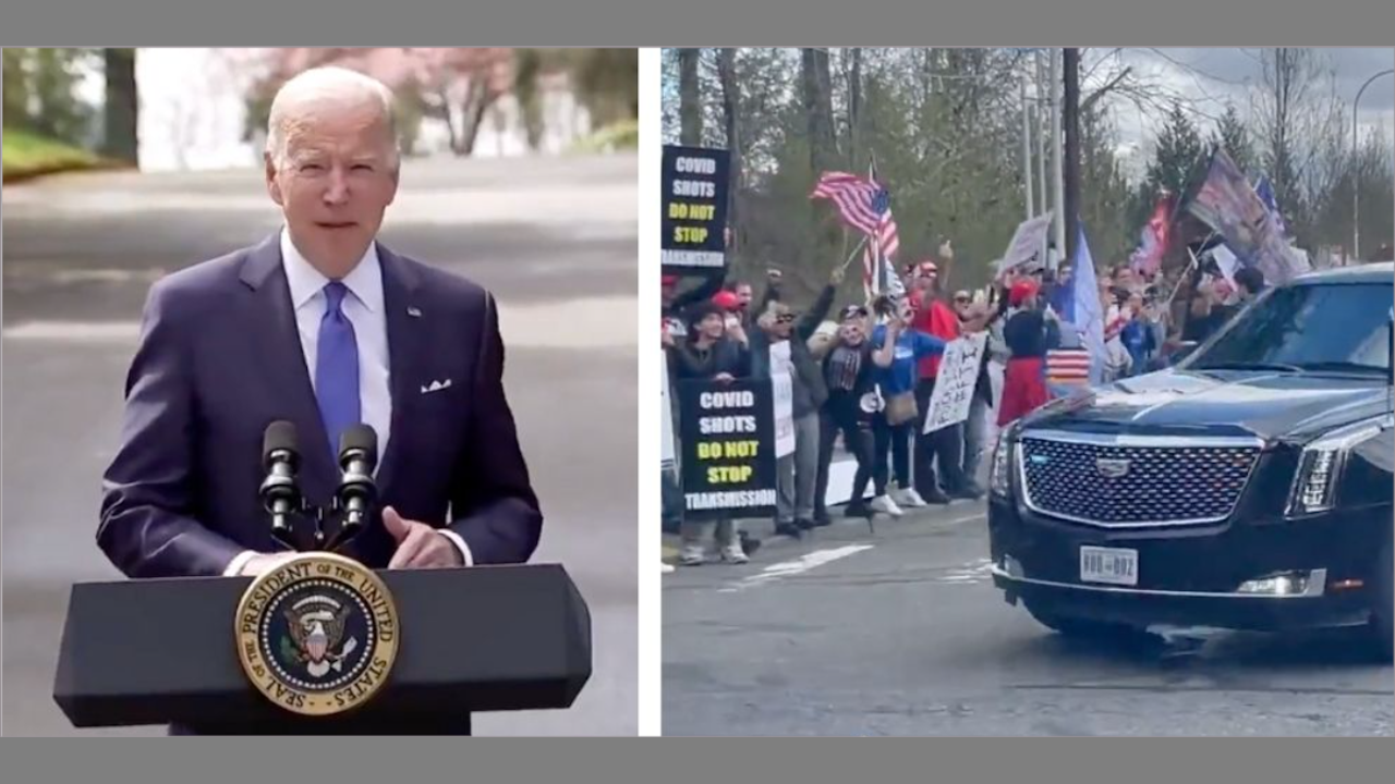 "As President Biden arrived in Washington state on Friday, he was greeted with chants of "Let's go Brandon." As the motorcade made its way to Green River College near Seattle, protestors lined the street waving Trump signs and cheering "Let's go Brandon" at the President."