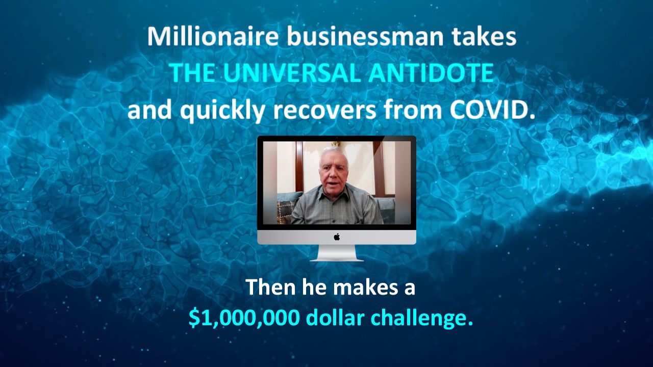 Wealthy Mexican millionaire recovers rapidly from COVID after taking THE UNIVERSAL ANTIDOTE and he then makes a $1,000,000 challenge to the FDA or anybody that can prove that THE UNIVERSAL ANTIDOTE is toxic. The Universal Antidote Documentary The science and story of Chlorine Dioxide. NASA proclaimed it a universal antidote in 1987. Since that time thousands have recovered from illness using this substance and now many physicians and scientists are saying it is powerfully effective for many applications. The Universal Antidote Documentary scheduled release is for February 1, 2021 The documentary explores the history, safety, and efficacy of the universal antidote and provides interviews with physicians and people who have used it. Find out more at any of the links below. Download Free Here: https://t.me/TheUniversalAntidote Watch Here: https://www.bitchute.com/channel/vrPbyKTAWm0N/ https://rumble.com/c/c-537305 https://www.youtube.com/channel/UCvHthwYiK5greISPBs_cM7Q