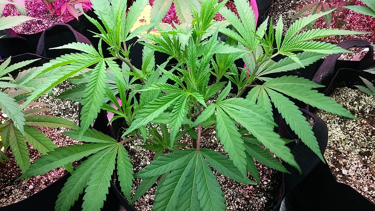 These young ladies will be future mothers for a 3000 geo thermal greenhouse grow with supplemental 315 cmh lights. Our mother room and propagation room is under construction so these are in easy set up tents with small fans. Grown in sunshine #4 with added worm castings and guano. Also added was mykos / azos. Most are in 7 gal or 5 gal fabric pots for now