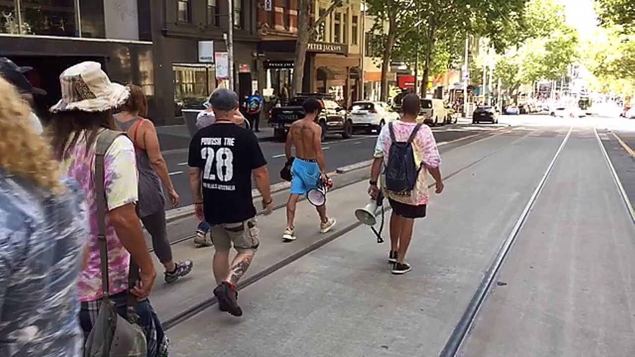 Part 3 of three videos of this Saturday rally, this one covering the final speech at Queen Victoria Market and the march back to Parliament House at the top of Bourke Street. We are a small group now but we remain undeterred in our focus of providing 'wake up' calls everywhere we go, calling out our corrupt government about the fifty thousand excess deaths in Australia from the time people started getting the 'jab'.