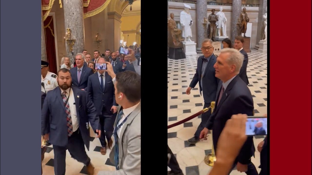 Kevin McCarthy being escorted out of the Speaker office.Oddly, this happened on "National Kevin Day"