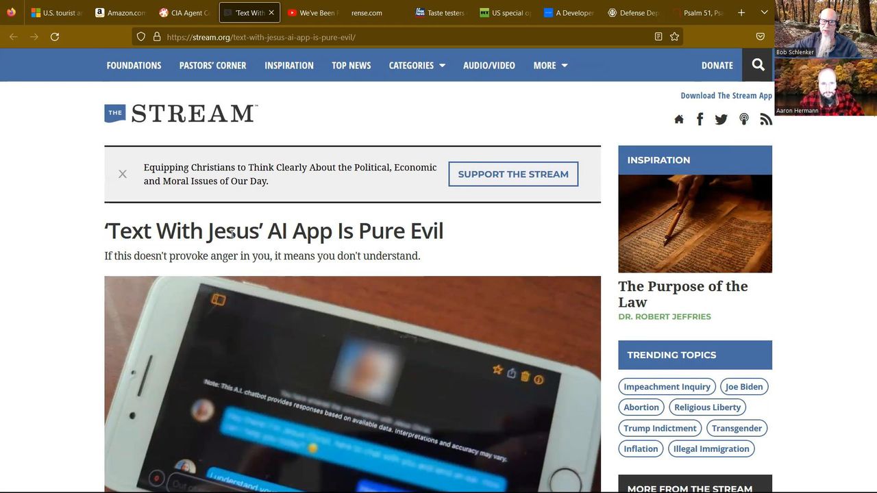 In this video, we discuss a range of subjects. The war in Israel seems to be leading to the prophesied conflict between the US and Iran. There's an AI Disinfo War raging. It is with AI as it is with people: Reverse Speech is Legit! Text with Jesus? The "Image of the Beast" Speaks! CIA Agent Confesses "We Created Adrenochrome Farms." For at least the last 35 years, we've been picking up a radio signal from space every 22 minutes! Scriptures with Aaron