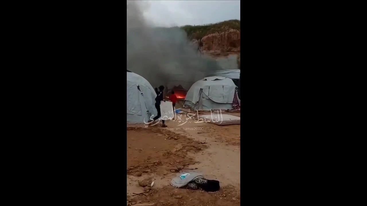 Footage captures the Israeli airstrike targeting a tent sheltering displaced Palestinians in Deir Al-Balah, in the central Gaza Strip.