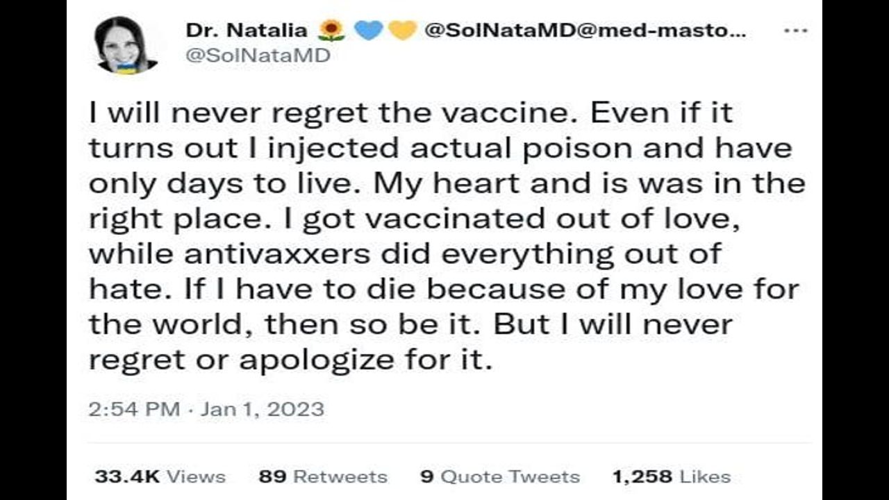 "She's realizing here that there is a narrative, and one of the narratives is the vaccine might be bad for you. So she's saying, even if it turns out I injected actual poison, the idea that you wouldn't be upset that you were duped into injecting actual poison when you were thinking that this was somehow going to save people and save the world is so insane that that wouldn't bother you."