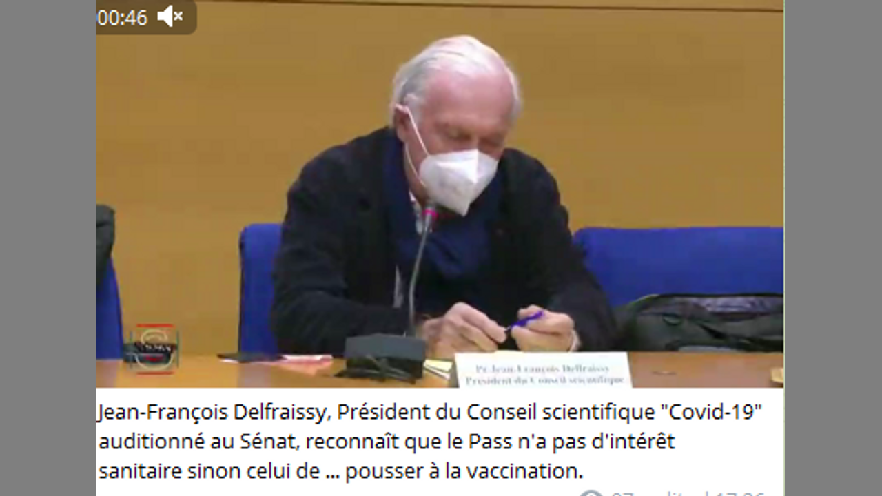 Delfraissy reconnaît que le Pass n'a pas d'intérêt sanitaire sinon celui de ... pousser à la vaccina