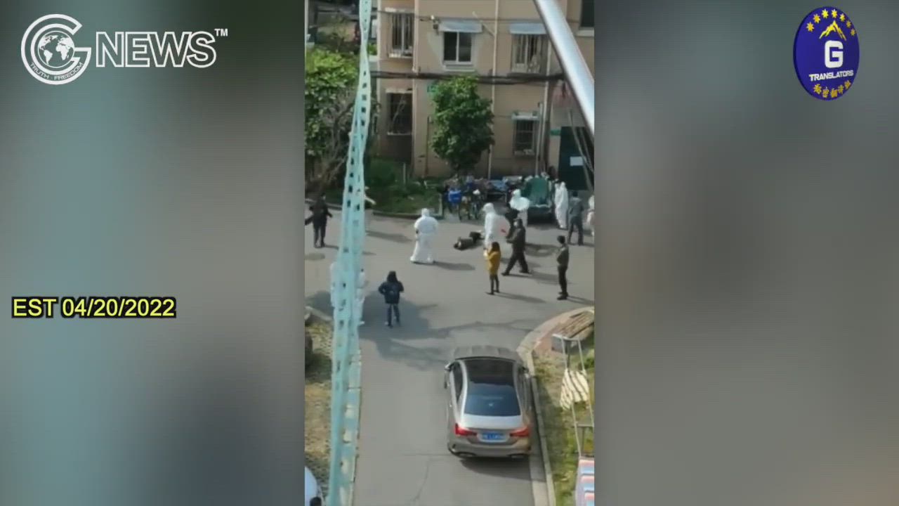 04/20/2022 An old man is body slammed by the white guards in Shanghai and is said to be dead.