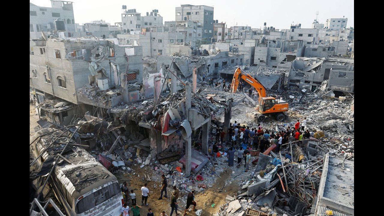 The consequences of Israeli Air Force strikes on the city of Khan Yunis in the southern Gaza Strip.
