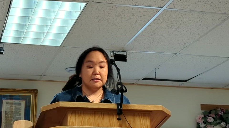 Song special by Alice Kagak Sunday, 6-09-24, at the Calvary Bible Baptist Church in Utqiagvik (Barrow), Alaska.