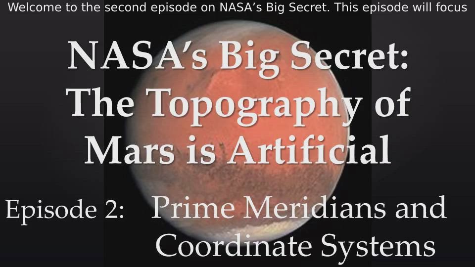 NASA’s present Martian coordinate system uses the centre of the Airy-0 Crater as the location of its prime meridian on Mars and divides the planet into 360 degrees. The Airy-0 Crater Prime Meridian has absolutely nothing to do with the ancient Martian civilization and only serves to hide the real coordinates of major sites. This episode will focus on revealing the ancient Martian prime meridians and coordinate systems. Unless you are aware of these prime meridians and coordinate systems, you will miss out on being able to detect much of the artificiality in the layout of important structures on Mars.