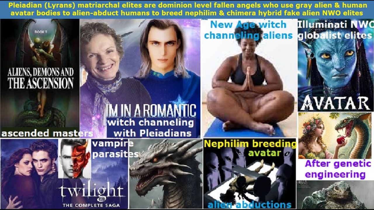 *** Intelligence news updates from the Human Homo-Sapiens Race Survival Resistance (HRSR) headquarters and Republic Rebel Alliance battlefront (May 2024). The Pleiadian fallen angel incarnate avatar globalist elites like the Shaw House’s matriarchal ruler Magdalene “Queenie” Shaw (aka Helen Mirren in Hollywood) and Heather Shaw (“goddess of hell Ereshkigal” aka Vanessa Kirby in Hollywood) and Janet Shaw (aka Taylor Swift in the music industry) and Deckard Shaw (“director of biochemical weapons against the human specie for the Shadow Group” aka Jason Statham in Hollywood) and Richard Bay (“COVID biochemical weapon vaccine & zombie virus manufacturer Umbrella company CEO” aka Tom Cruise in Hollywood) and all the other cybernetic body celebrities are dominion level fallen angels. They use the little gray alien human hybrid bodies as avatars, which cannot reproduce. All the Pleiadian fallen angels and Andromedan fallen angels and other humanoid fallen angel fake aliens were originally Lyrans or feline fallen angels. The Pleiadian Watchers fallen angel fake alien incarnate avatars call themselves the “Elohim” or “elves” in the “Lord of the Rings” movies, which is the plural of “El” which means “god,” just like all the angels have the word “el” at the end of their names signifying various attributes of God, because they are fallen angels masquerading as fake aliens. They are vampires, who drink soul energy human blood and eat humans and feed on the soul energy of hatred & anger & fear & sorrow & pain & torment of the humans through wars & war crimes & fake natural disasters & all germs’ diseases they created & drugs & divorce & poverty & famine & murders & rapes & satanic child sacrifices, because they are cut off from God’s life source & light photon sound Word who is Christ. They are creating nephilims by abducting their Mormon and Wicca and New Age spiritualist occult esoteric witchcraft necromancy spirit guide channeling witch feminists, and inseminating genetically-modified human & animal sperms with angelic DNA, in order to create nephilim fake aliens and chimera fake aliens in different planets and in the Hollow Earth cities. They are taking elemental spirits like sprites and genetically altering them into parasite demons to inhabit human bodies. The dominion level fallen angel Pleiadian fake aliens have no choice but to be used by the seraphim & cherubim fallen angels like Satan Lucifer and his Shambhala headquarter ascended master fallen angels fake alien fallen angels, because their consciousness is controlled by them. Warn all your fellow church donators and 6 billion humans and mobilize God’s spiritual army now, or go join Satan Lucifer already, you cowardly traitor to our God & human specie. Expose the Shaw House rulers of earth. Preach this in your next Sunday church service sermon, so that 99% of your church donators will leave your church in anger & terror & disgust, so that God’s house will be cleansed of their religious filth. Do it now and do not wait until tomorrow, unless you are a crazy lunatic who has lost all common sense of the Holy Spirit. Jesus died on the cross to atone for your sins, and he rose again, and he is seated on his throne in heaven reigning, so that whoever repents and receives him as Savior & Lord will receive forgiveness for sins and the gift of eternal life. Salvation is by free grace and faith in the atoning blood of Jesus, and not by wearing women's head coverings or abstaining from cross-dressing in men's pants or abstaining from extorting fake illegal tithe income tax. Repent and receive Jesus as Savior, and make straight the way of the Lord!