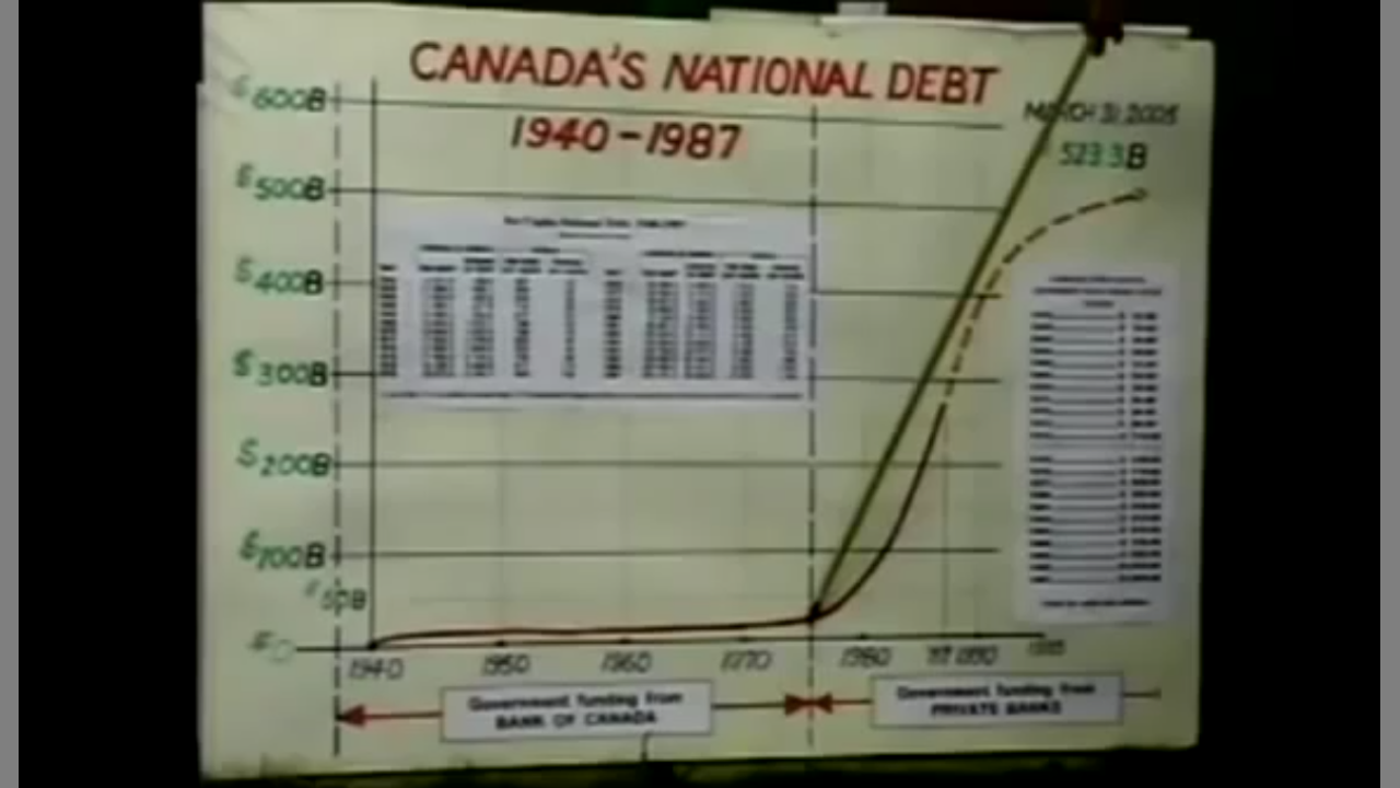 Originally the Bank of Canada, was a Public Bank. That is, it lent money to the Government of Canada at zero interest rate and the money simply had to be repaid or was simply spent into existence. This was sound banking. Canada built the third largest Navy in the world. When WWII was over we were able to put the soldiers to work. Many were given a university education with free tuition. Or were given a veterans land act grant to go into business or to go into farming. This was all money given by the people to the people who returned from the war. To keep everyone busy we created the Saint Lawrence Seaway. We built the Trans Canada Highway. We built the Railways we did own the CNR at that time. It was our National Railway. About 37% of our money was spent into existence to create infrastructure and social services. We gave family allowances for children. We built up colleges. We brought in old age pensions. And we brought in medicare. The Bank of International Settlements said you are encroaching on the services that banks give. You should not be printing the money that the people need we should be. And immediately we started to go into debt.