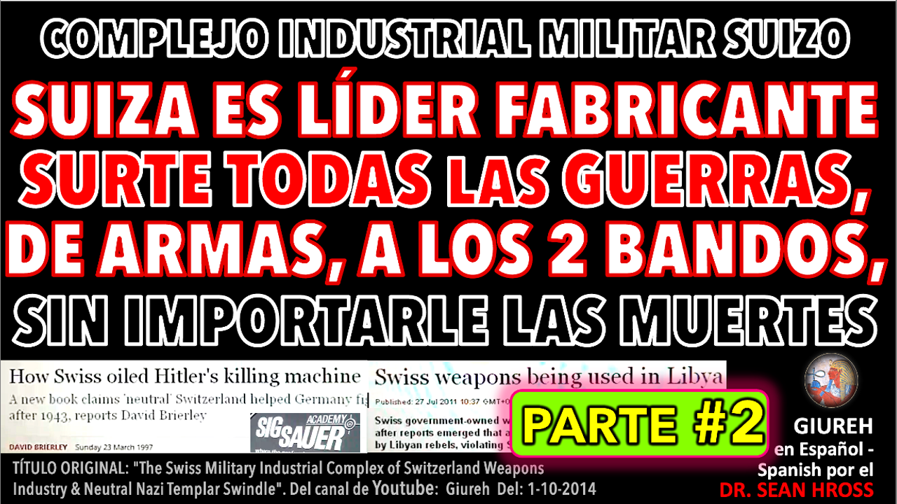 TÍTULO ORIGINAL: "The Swiss Military Industrial Complex of Switzerland Weapons Industry & Neutral Nazi Templar Swindle". Del canal de Youtube: Giureh Del: 1-10-2014 Autor: Dr. Sdf. Sean Hross. (Sdf. = Sin Domicilio Fijo en Francés). Traducido y subtitulado por: GIUREH EN ESPAÑOL - SPANISH. Encuentra a "GIUREH EN ESPAÑOL - SPANISH" en: Plataformas y redes: Brighteon, Youtube, Bitchute, Minds, Instagram. Y AHORA EN archive.org NOMBRE DEL CANAL: GIUREH en Español - Spanish O ENCUÉNTRANOS COMO: @GIUREHespanol Dr. Sean Hross / Traducido y subtitulado por GIUREH EN ESPAÑOL antes ABRE LOS OJOS