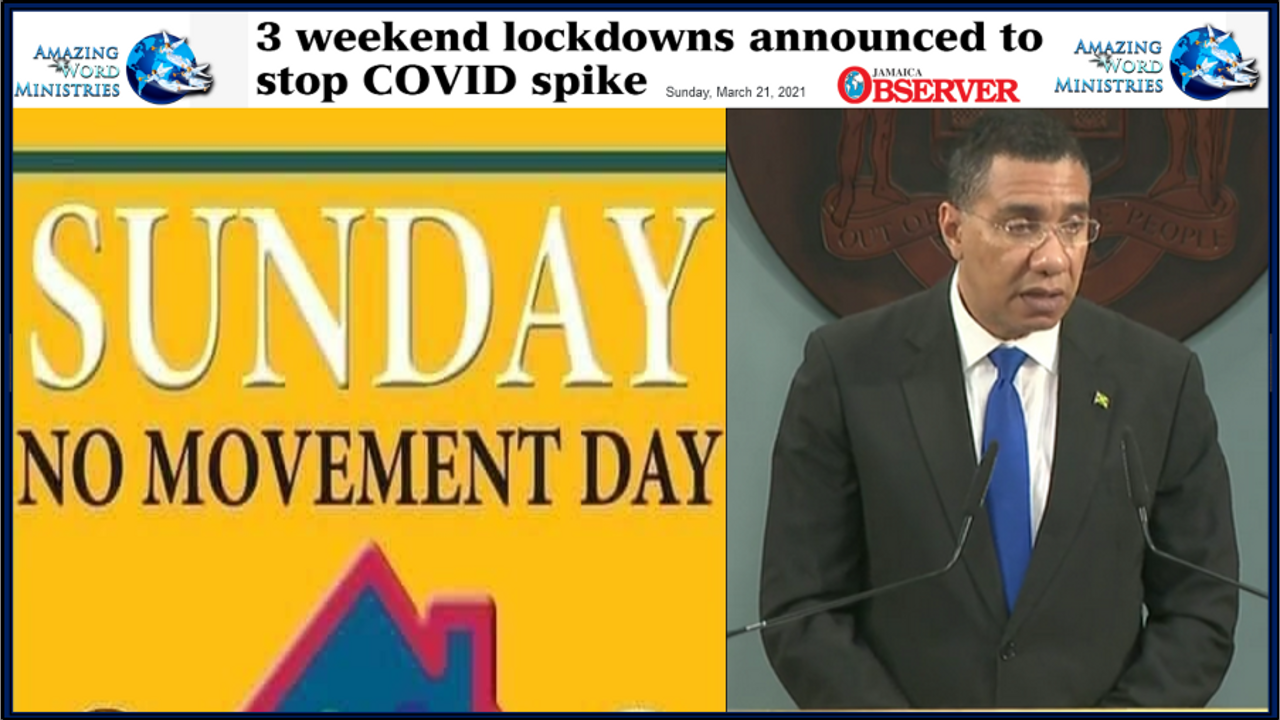Jamaica Three Weekend Lockdowns NO SUNDAY MOVEMENT. SDA Leader Said Take The COVID Vaccine for Your Health