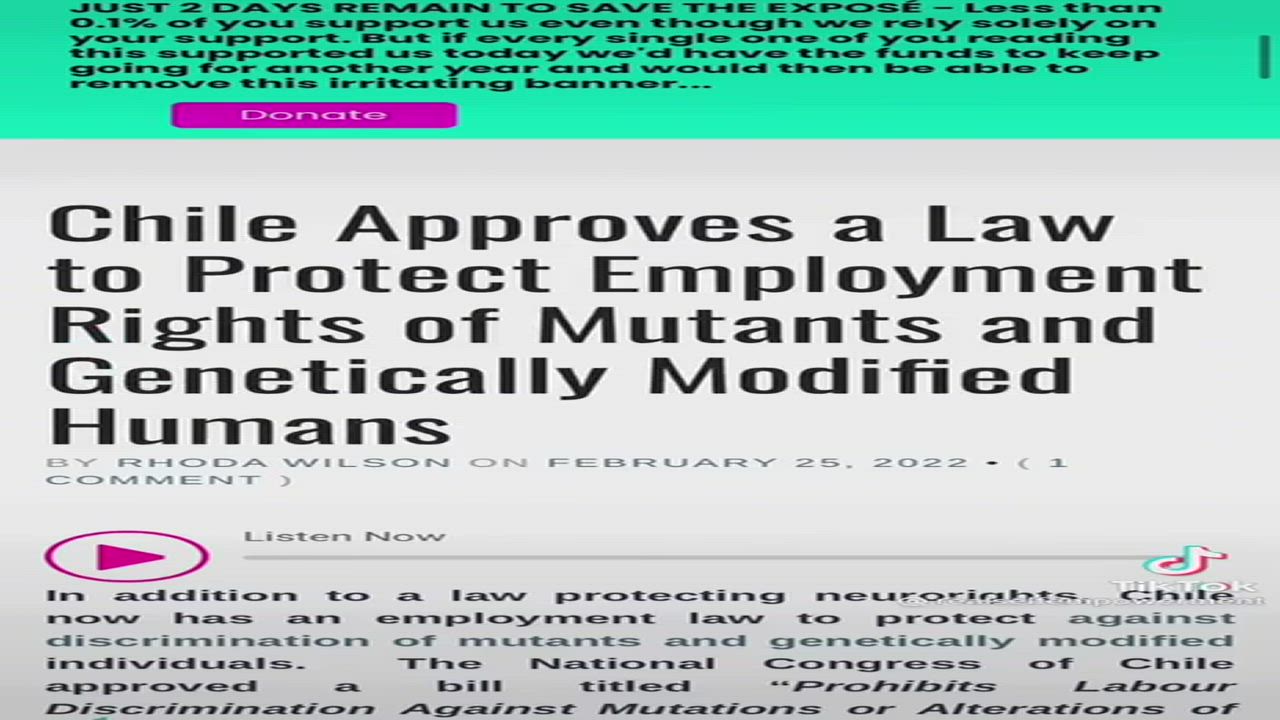 Chile approves a law to protect employment rights of mutants & genetically modified humans, or should I say trans-humans.