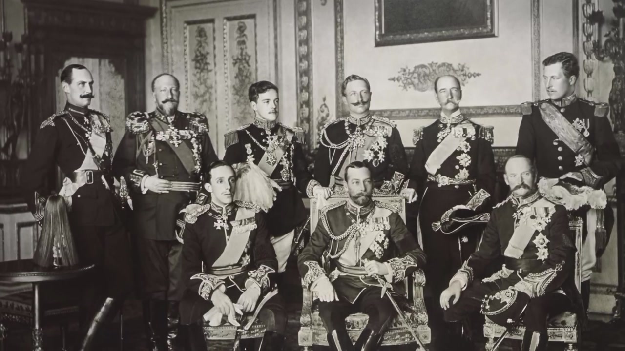 In this video, we unravel the fascinating story behind one of the most iconic photographs of the 20th century. May 1910, Windsor Castle: nine crowned heads of Europe stand together, smiling for the camera. Who are these monarchs? What binds them, and what will happen just four short years later? This is no ordinary family portrait; it's a snapshot of world leaders on the precipice of global conflict. We'll show you how emperors and kings, related by blood and dynastic marriages, such as Kaiser Wilhelm II, King George V, King Albert I, King Haakon VII, King Alfonso XIII, and others, found themselves on opposing sides of World War I.