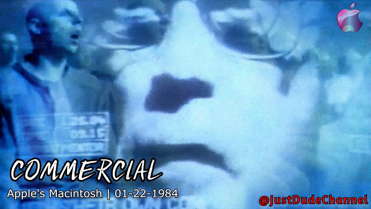 This ad is clearly inspired by George Orwell's 1984 dystopian novel, you see prisoners/slaves being marched into a room and then looking on in a state of trance at a projection on the wall symbolizing them being brainwashed by the screen in front of them.