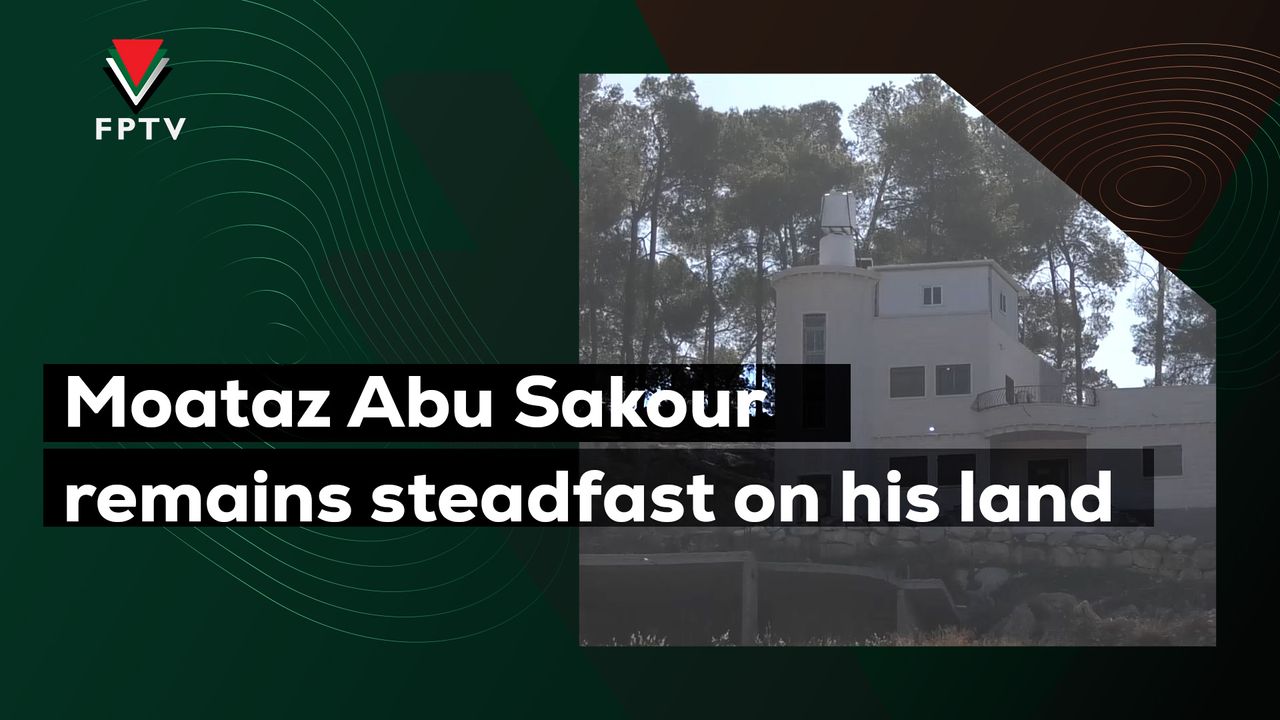 Palestinian Moataz Abu Sakour from the village of Tarqumiya refuses to leave his land despite the settlers’ attacks on him. The occupation confiscated hundreds of dunams of Palestinian land in the village Interview: Moataz Abu Sakour: The owner of the land