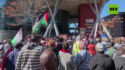 Dozens of pro-Palestine activists RALLIED outside Swiss mining giant Glencore’s Johannesburg office.
