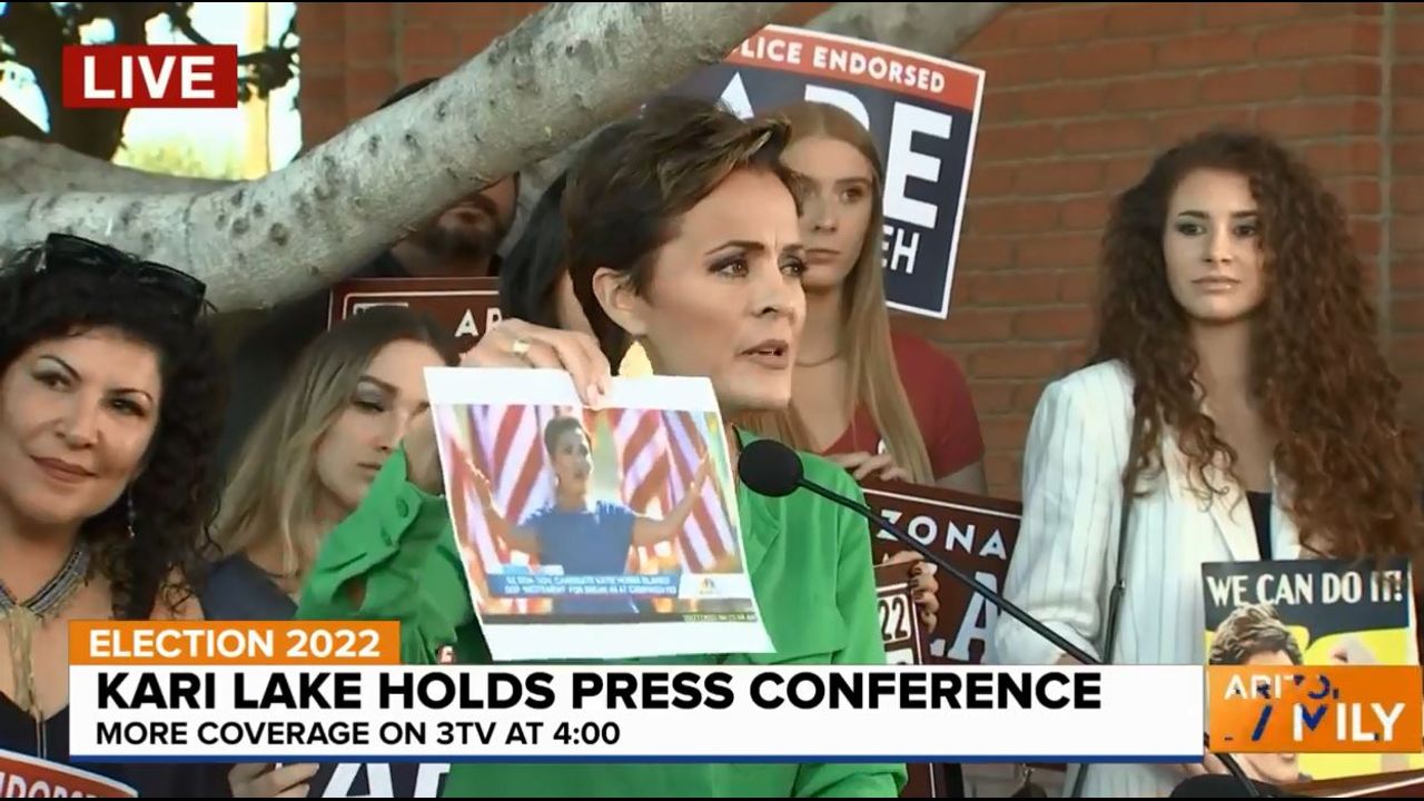 Kari Lake holds a press conference with the midterm elections coming up Nov. 8
