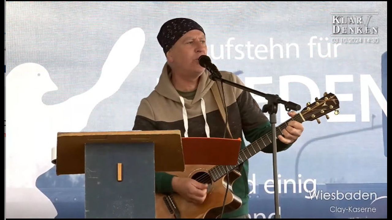 Friedensdemo am 03.10.2024 in Wiesbaden | Guy Dawson mit dem Song - Go on home US soldiers go on home