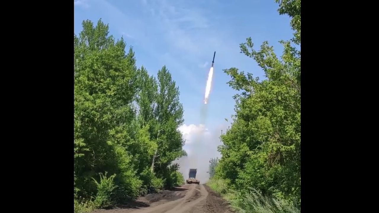 Russian Heavy flamethrower systems TOS-1A "Black Hussars" hit enemy positions near the Svatovo-Kremennaya line