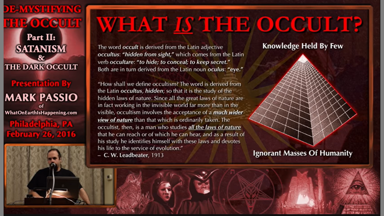 Mark Passio continues his exposé of the world of The Occult by clearly defining Satanism and decoding Dark Occult symbology. What IS Satanism? What IS Dark Occultism? How are they employed to control us? How can we defend ourselves against their unholy influence and manipulation?