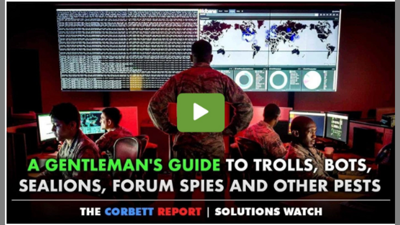 Let's face it: comments often suck. And who's to say they're even real? But what's the solution to these crappy communications? Well, don't read the comments, of course. But if you do decide to wage into the the infowar battlespace that is the comments section, then at the very least you need to arm yourself with knowledge of the various tactic that the trolls, bots, disinformation agents, psyops warriors, sealions and forum spies are employing to derail you from taking meaningful action. Today on #SolutionsWatch I'll help do just that by reviewing The Gentleperson's Guide to Forum Spies.