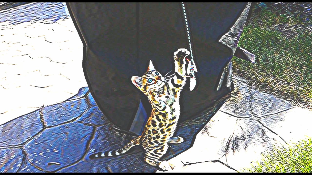 Videoshop 1995 video filter used quite high to give a cartoonish look for CHASE the Bengal Kitten.