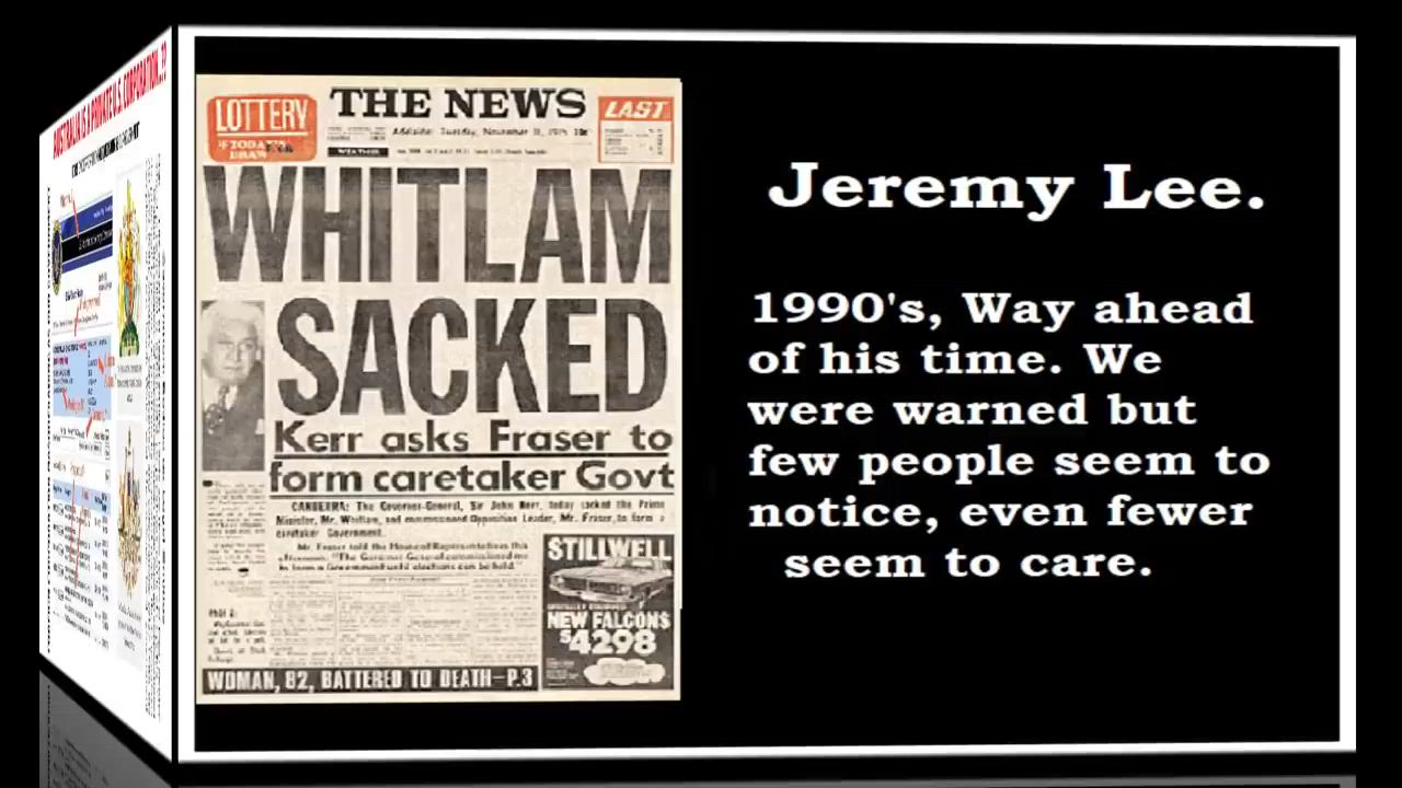 Jeremy Lee. 1991, wow! Way ahead of his time. We were warned but few people seem to notice, even fewer seem to care. Listen now and tell me how much you think has come to pass in the last 30 years. If only every Australian had seen this I don't believe we would be where we are today.