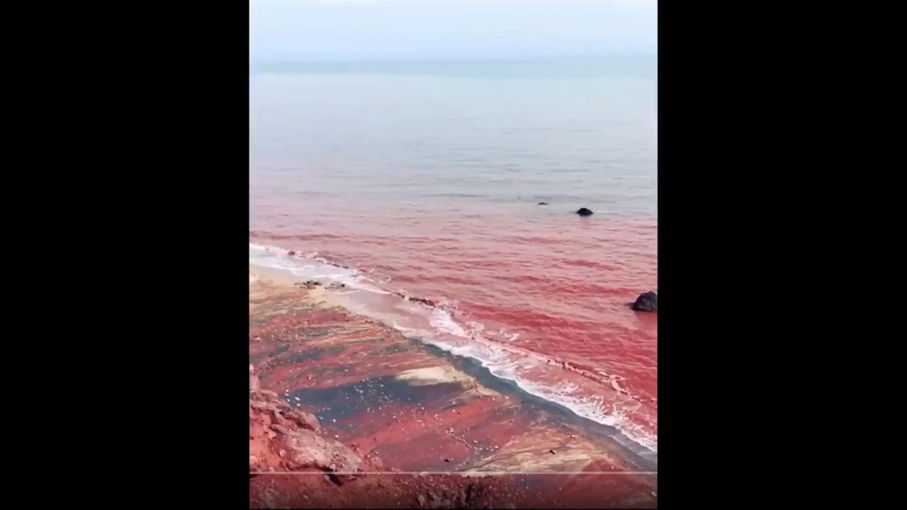 'CREEPY OMEN' the ocean in Hormuz near Iran turns blood-red!!