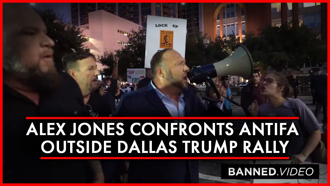Powerful Footage! Alex Jones Confronts AntiFa Outside Dallas Trump Rally