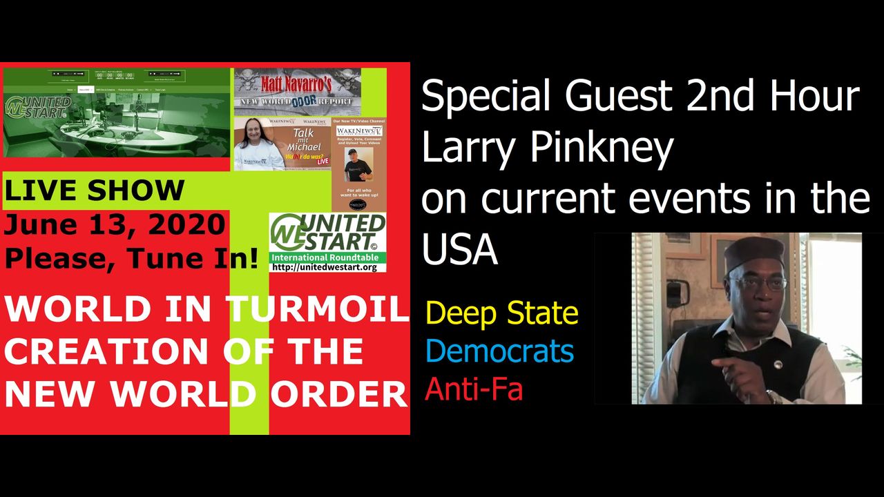 Links: https://mywakenews.wordpress.com/2020/06/13/world-in-turmoil-live-show-20200613-with-guest-larry-pinkney-unitedwestart-roundtable-discussion/