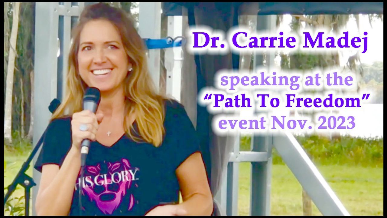 Dr. Carrie Madej speaking at the "Path To Freedom" event.