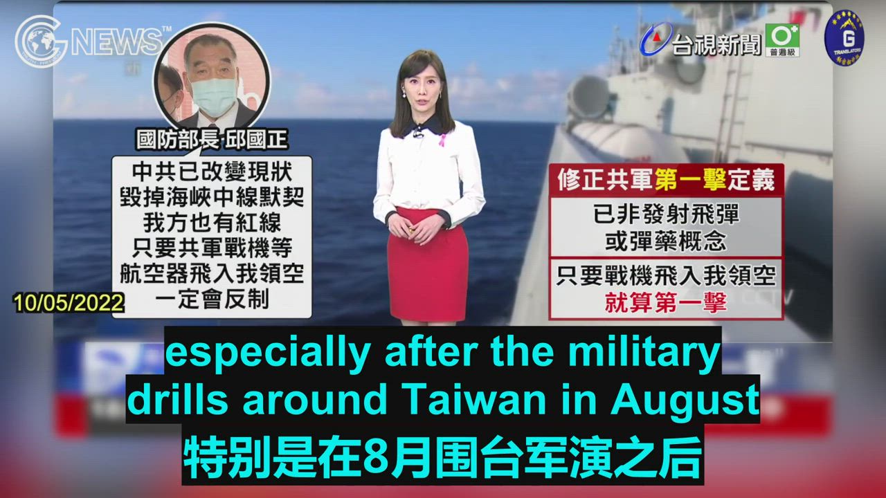 10/05/2022 TTV NEWS: The CCP frequently encroaches on Taiwan with Gray Zone operations and Chiu Kuo-Cheng issues harsh words to counteract PLA provocations head-on: should CCP’s military aircraft fly into Taiwan’s airspace, it will be considered the first strike