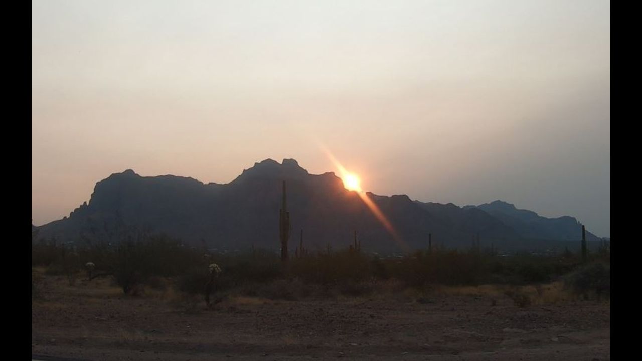 Real time video of sunrise over the Superstition Mountains in Arizona. Music by ShariLaFontaine.com