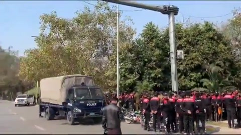 🚨 Video footage shared on social media reveals the significant police deployment in Zaman Park, Lahore, surrounding Imran Khan's residence. reveals the significant police deployment in Zaman Park, Lahore, surrounding Imran Khan's residence.