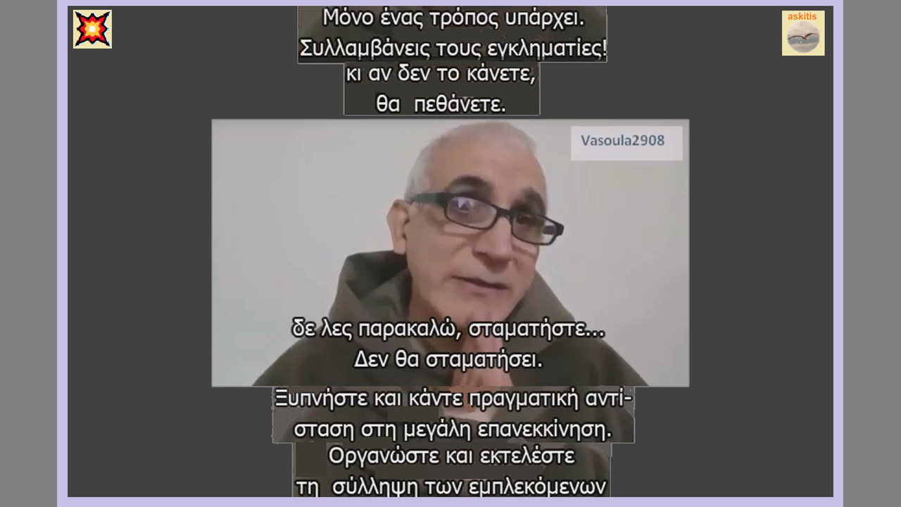 Ο Alexis Bugnolo σαφής και χωρίς περιστροφές, δείχνει το δρόμο για να απαλλαγούμε από τον εφιάλτη, την απάτη, τα μέτρα, τη λυσσαλέα επιμονή για να δεχτούμε ενέσεις θανάτου επειδή η εγκληματική συμμορία θέλει και αποπληθυσμό και απόλυτο έλεγχο. Η ελευθερία θέλει αρετή, τόλμη, δύναμη και αποφασιστικότητα, όχι απλά διαμαρτυρίες και παράπονα που έτσι κι αλλιώς δεν ακούγονται.