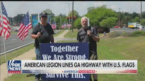 American Legion lines highway with American flags to boost morale amid pandemic