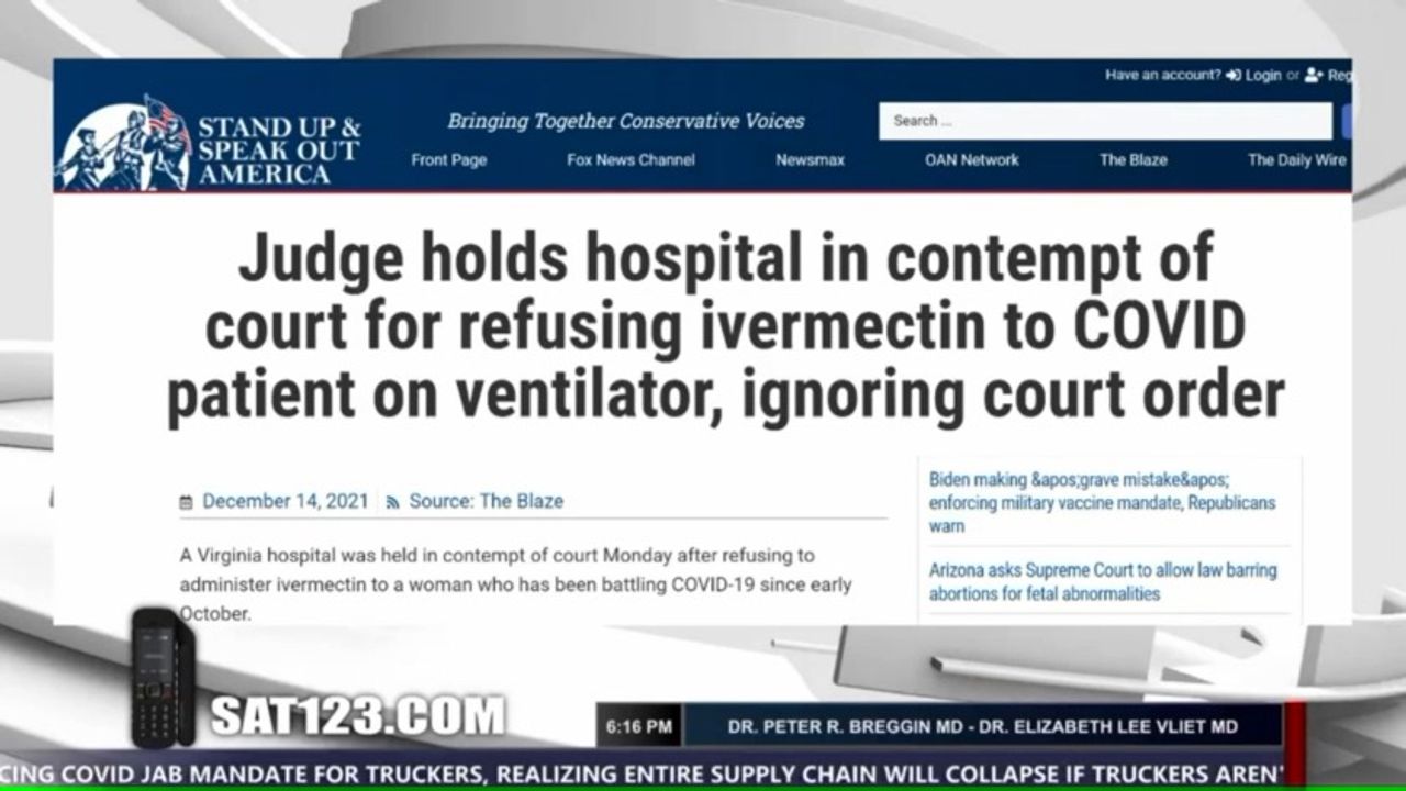 "COVID patients in America's hospitals today are actually treated worse than prisoners in America's jails. They don't have visitation rights. They don't have the right to decide treatment. They are refused fluids and nutrients. They are not given antibiotics. They are not given corticosteroids. Ivermectin is what’s been in the news; it's more serious than just one drug. They're not getting a whole lot of things that I just listed."