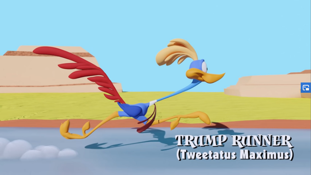 Certified genius Schiff T. Coyote demonstrates the meaning of insanity in his relentless pursuit of the elusive Trump Runner.