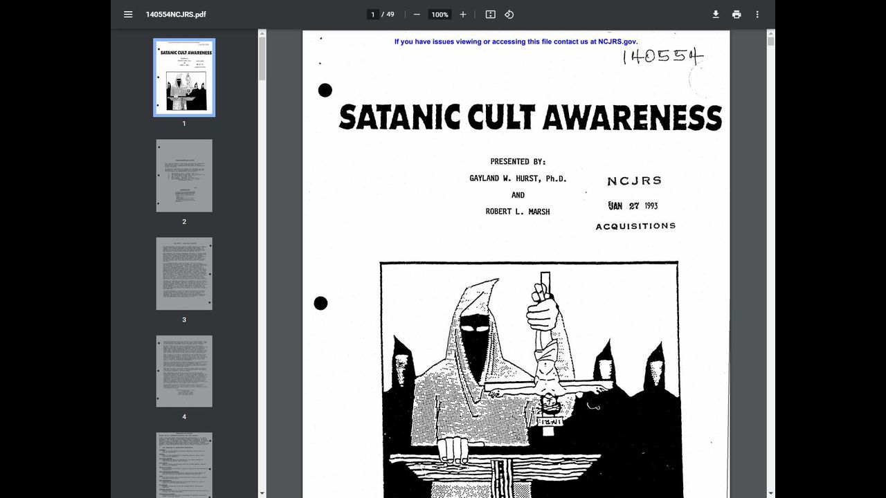 The many problems involved with the occult explosion is becoming a many faceted puzzle confronting Law Enforcement today. In addition, it is most difficult to understand for involved in secret practices of satanic worship are deeper unlimited drugs and narcotics, deviant sexual behavior that go with it.